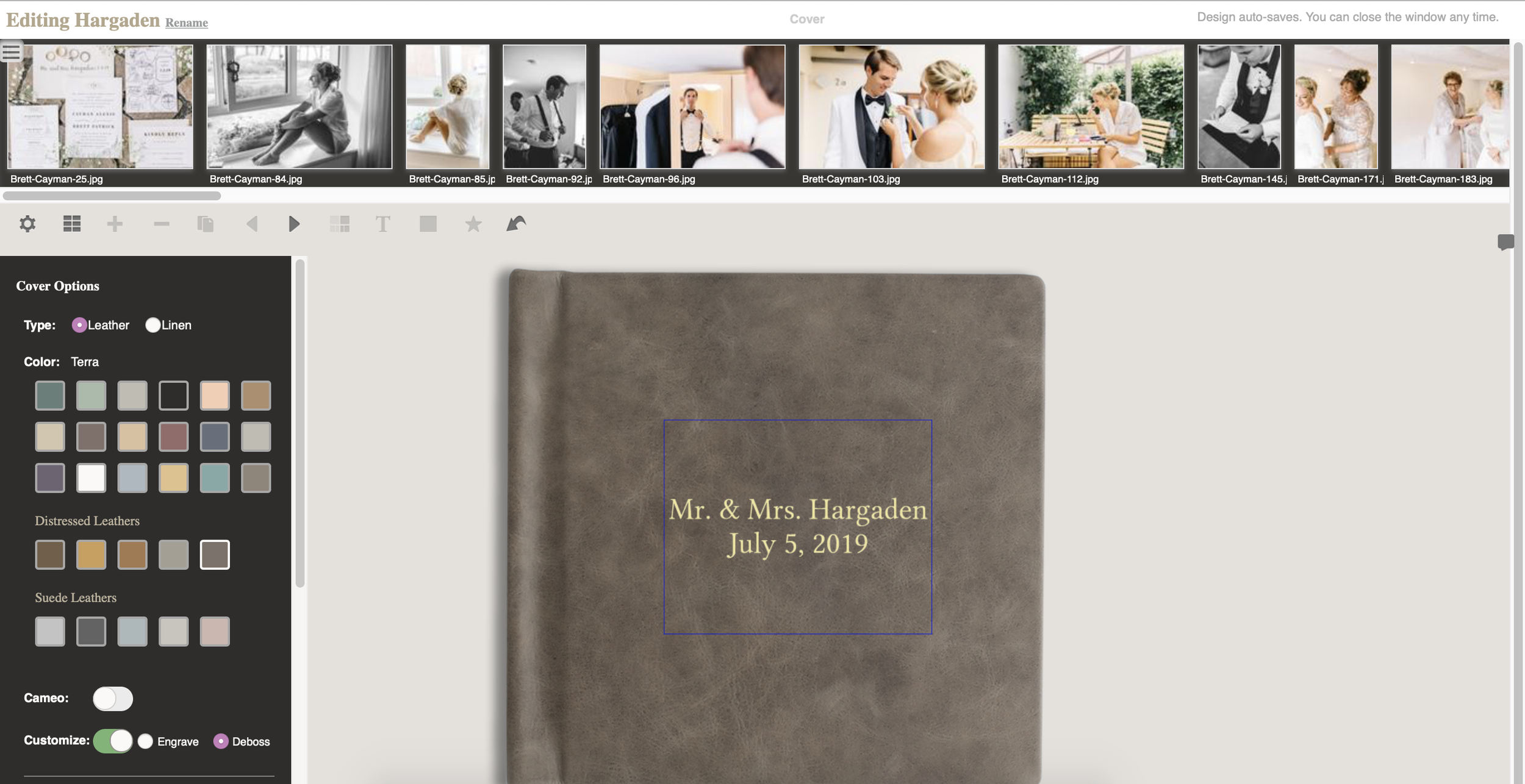 Personalize – Pick your cover material, color, and custom text in elegant debossing or engraving.